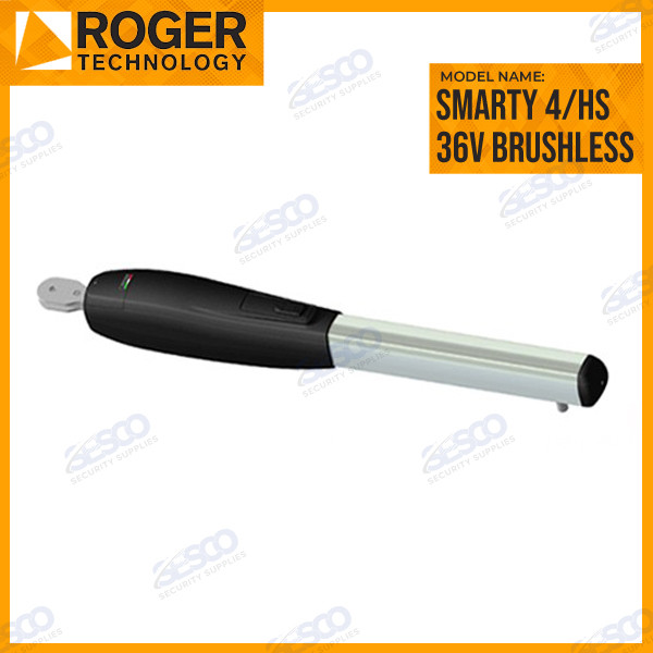 Roger Technology SMARTY 4 36V aboveground ground gate motor as part of the SMARTY 4 electric gate swing kit. The SMARTY 4 Electromechanical actuator BRUSHLESS is a low voltage, super intensive use, with native encoder onboard, irreversible, ideal for swing gates with leaf up to 4m lengths, with mechanical stopper in opening and closing.
