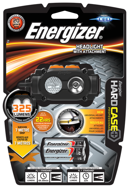 ENERGIZER HARDCASE LED HEADLIGHT RUGGED W/ ATTACHEMENT + 3x AA