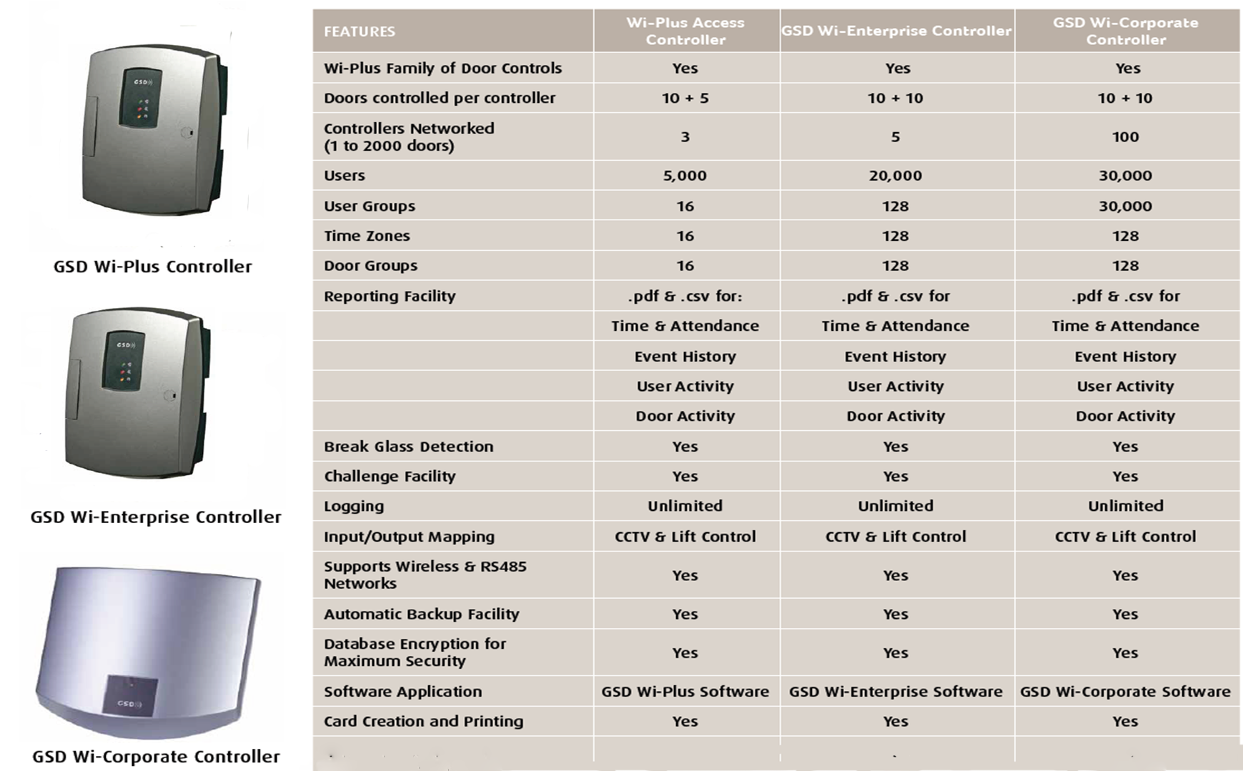 The GSD Wi-Corporate Controller can manage up to 20 Door Controls, networkable via TCP/IP to the GSD Wi-Corporate Software Suite. A choice of technologies including Biometric Fingerprint, MIFare DESFire Smar Card, RFID, or PIN are avaiable depending on the security requirements of site.