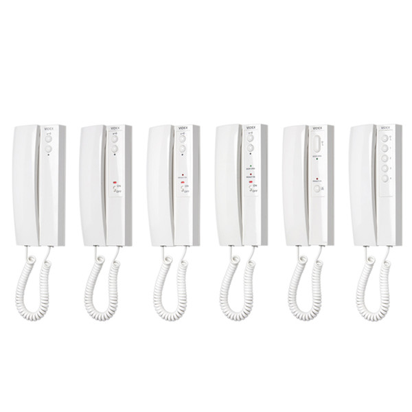 An extensive range of Videx modern telephone handset units to suit all applications. Manufactured in white impact resistant ABS plastic, all models incorporate a 3 position call tone volume control and replaceable plug-in telephone handset cord.